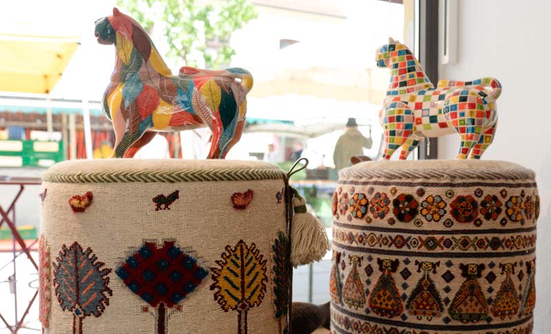 Sie finden bei uns eine große Auswahl an ausgesuchten Kleinmöbeln, Lampen, Kissen, handgewebten Schals, Taschen, handgefertigten Messern und dekorativen Figuren und vieles mehr.